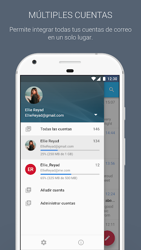 Todas las Cuentas en Una - Gestione correos electrónicos de Exchange, Gmail, Google Apps, Outlook, Office 360, Yahoo! Mail, AOL, iCloud o de cualquier otro servidor IMAP.