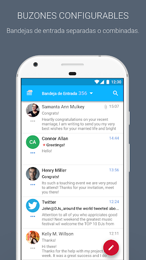 Optimizada para un Alto Rendimiento - Una aplicación de correo electrónico buena debería ser rápida. Con características inteligentes como pre-cargar, almacenamiento de caché y la auto-detección, hacer cosas como refrescar una Bandeja de Entrada, cargar más mensajes y recuperar contactos solo toman uno o dos segundos.