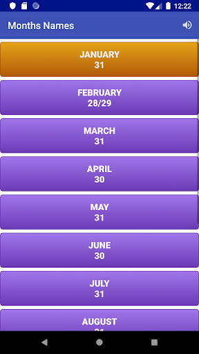 Los nombres de los meses de calendario y los días de la semana los nombres serán hablados por la aplicación para que el aprendizaje sea más fácil y rápido.