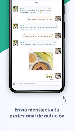 Mensajes: siempre que tengas dudas, podrás enviar un mensaje o, incluso, una foto a tu profesional de nutrición.