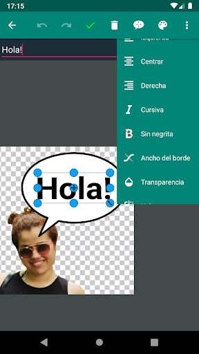 Además, también puedes agregar texto o burbujas cómicas (hablar, pensar, gritar, ...) las veces que lo quieras. Estos elementos también se pueden personalizar. Entre otros, puedes cambiar su tamaño, color, ancho de contorno, transparencia, tipografía, etc.