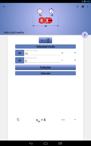 Aplicación sensacional, fácil, intuitiva, práctica y muy útil para calcular fórmulas de física. Calcular velocidad, fuerza, temperatura, corriente eléctrica y campo magnético nunca ha sido tan fácil.