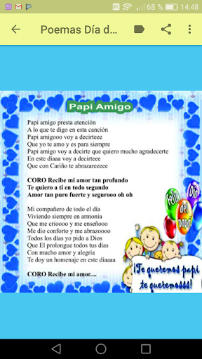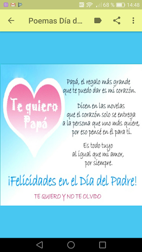 P.D: Dedicamos con todo cariño esta aplicación "Poemas para el Dia del Padre" a todos los Padres del mundo, amigos, padres, abuelos, esposos, padres luchadores y trabajadores. Gracias por existir !!