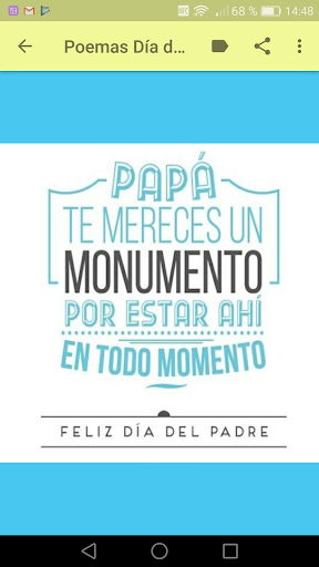 Descarga ya mismo esta aplicación y disfruta enviando tarjetas de felicitación para el dia del padre, demuestra lo mucho que quieres a tu Padre, él sabrá valorar estas imagenes con frases bonitas para un padre.