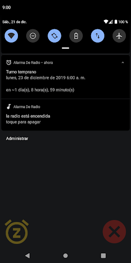 Una notificación en la barra de notificación indica la siguiente hora de alarma; al tocar la notificación se abrirá la aplicación.