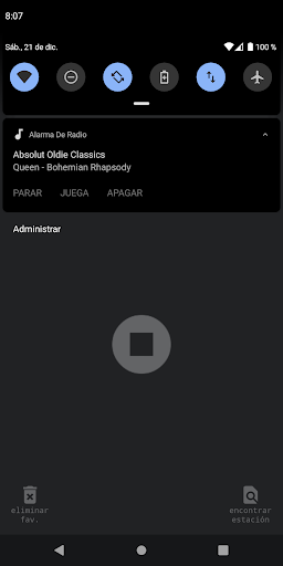 - una notificación en la barra de notificación indica que la radio está encendida y un toque lleva de vuelta a la pantalla "wake-up".