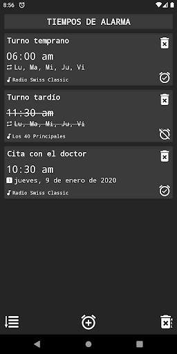 Puede configurar varias alarmas de repetición (semanales) o de una sola vez por día.