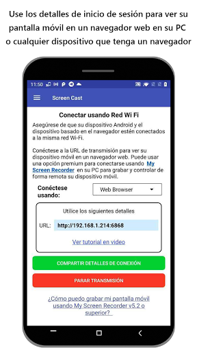 Screen Cast la pantalla de su móvil a su PC, Mac, Tablet o Smart TV. Utilice cualquier dispositivo que tenga un navegador y una conexión a Internet para ver la pantalla de su dispositivo móvil de forma remota.