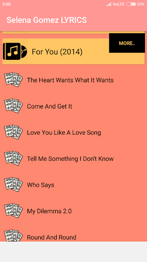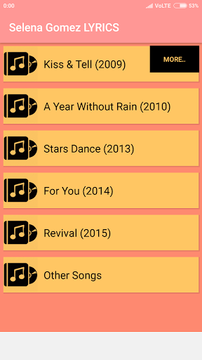 This Application contains all the Albums and Singles of Selena Gomez.