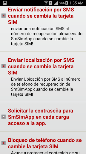 6- Enviar notificación por SMS cuando se cambie la tarjeta SIM.