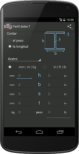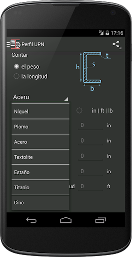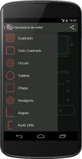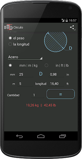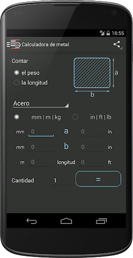 Esta aplicación le ayudará a calcular el peso o longitud de la selección de metal de diversas formas. El uso de esta calculadora, puede especificar la longitud y el peso del metal, y viceversa.