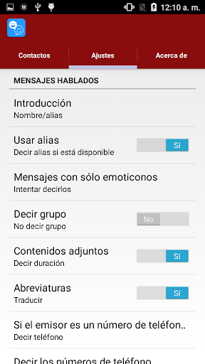 • Opciones para decir nombre del grupo de Whatsapp , duración de videos ó audios adjuntos y emoticonos en sus mensajes de Whatsapp.