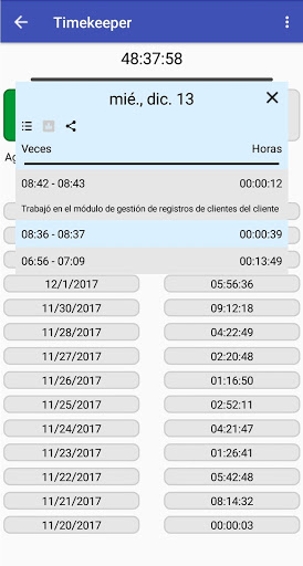- ¡Ordene las entradas de su tiempo por día, semana, mes o incluso año!