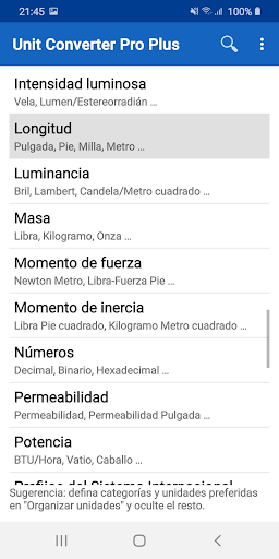 Unit Converter Pro es una utilidad (convertidor) muy práctica para estudiantes, profesores y profesionales de ingeniería, física, ciencias y temas técnicos diversos. Puede convertir rápidamente más de 1500 unidades organizadas en 79 categorías.