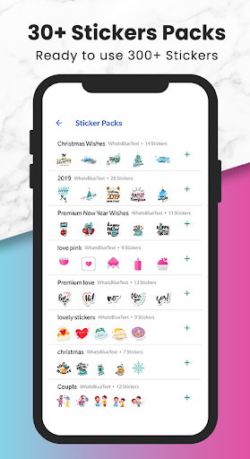 también conocido como WhatsBlueText se renueva con un par de características nuevas que incluyen una serie de arte de texto con estilo y una función para crear su propia etiqueta de Whatsapp (WAStickerApps) usando un aplicación de creador de pegatinas.