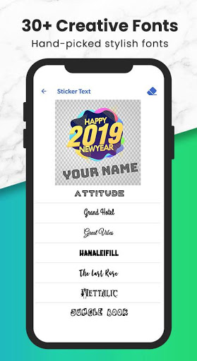 "Sticker Maker" El módulo le permite crear su propia etiqueta personalizada con el nombre. Con los textos adhesivos a su disposición, no solo podrá relajar más los dedos, sino que también podrá crear calcomanías personalizadas con nombres con más de 30 fuentes diferentes, más de 20 estilos de combinaciones de colores brillantes, 3 millones de opciones de color y arte de texto personalizado.