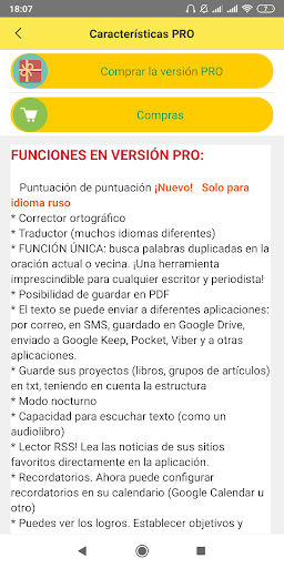 Estamos en constante desarrollo y mejoraremos la aplicación. Aparecerán nuevas funciones. Después de la actualización, las nuevas funciones estarán disponibles automáticamente para aquellos que compraron la versión PRO. Además, aparecerá una funcionalidad gratuita.