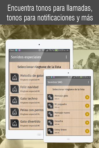 ¿Buscando nuevos tonos de llamada para tu dispositivo móvil? Descarga la nueva app de sonidos de gatos grátis y personaliza el sonido de tu dispositivo eligiendo el que más te guste de la gran variedad de sonidos gratis para teléfono disponibles.