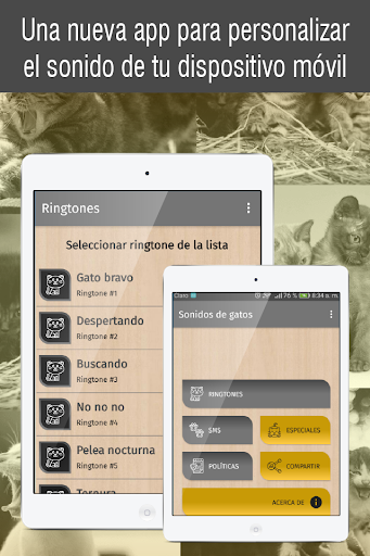 tonos de gatos para celular es una app pensada especialmente para tu celular, con una colección genial de ringtones gatos que puedes usar como: tonos de llamadas, tonos de sms, alarma o notificación.