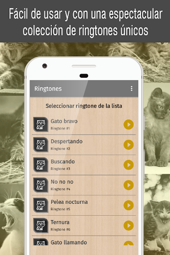Esta app es muy sencilla de usar, con una interfaz de usuario simple y hermosa, y con una excelente selección de sonidos gatos que podrás disfrutar en cualquier momento (¡que los ringtones de gatos siempre te acompañen!).