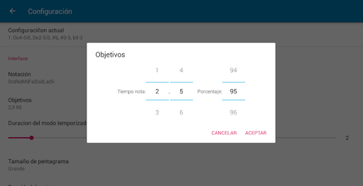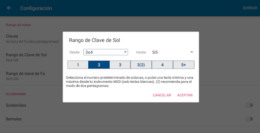 ✔ Rango para armaduras configurable. Hasta siete sostenidos/bemoles. Ajuste de máximos y mínimos si quieres practicar una tonalidad en particular.