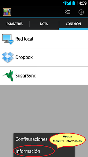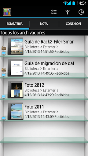 Los datos de archivador también se pueden importar en Rack2-Filer Smart for Android a través de servicios de nube (SugarSync y Dropbox).