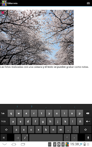 - Una nota puede incluir texto y fotos (*).