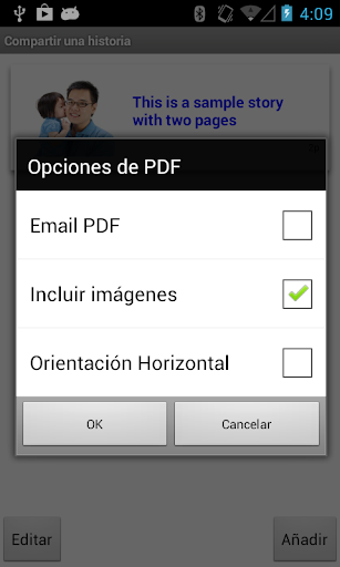 Cada historia se organiza en páginas con una imagen, video y texto. Las páginas pueden tener un clip de sonido adjunto o la interpretación de texto a voz. Las imágenes y los sonidos pueden ser seleccionados de álbumes en el smartphone o grabadas al instante. Un cuaderno de dibujo y escritura a mano está disponible para Samsung Galaxy / Note S Pen. Las historias se pueden añadir y editar con un asistente fácil de usar. Divertidos efectos se pueden agregar con el editor de fotos Aviary integrado. Las historias se pueden guardar como PDF y enviar por correo electrónico. Toda la historia también puede ser compartido por correo electrónico con otros Mostrar y contar usuarios.