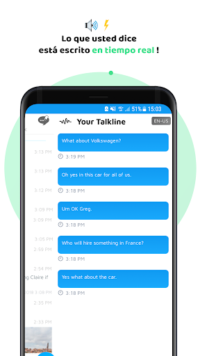 Cuando se pulsa el botón micrófono en EnjoyUp, todo el mundo puede oírse sin límites. Todo lo que usted dice se transcribe automáticamente en tiempo real en su línea de voz personal (10 idiomas incluidos). Con un simple gesto, captura y comparte lo que más te importa.