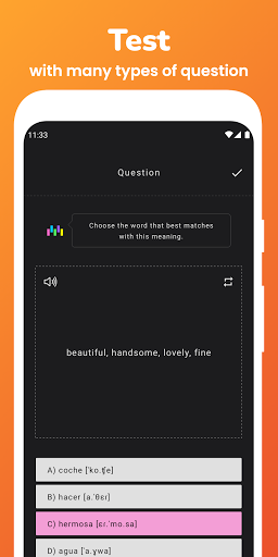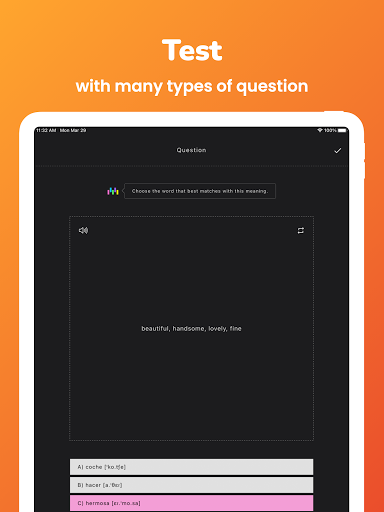-soporte muchos tipos de pruebas para el aprendizaje de español ( pregunta de opción múltiple, la escucha, a juego, volteando tarjeta de memoria flash, etc)