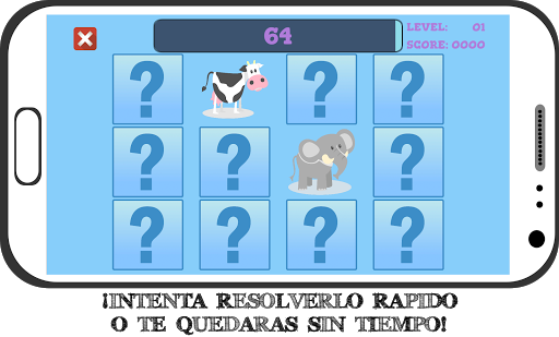 Animal Cards Juego de Memoria es una excelente versión del clásico juego de memoria (también conocido como memory o memorama) con tarjetas de animales. Este juego ayudará a desarrollar las habilidades de concentración, visuales y de memoria de los niños.