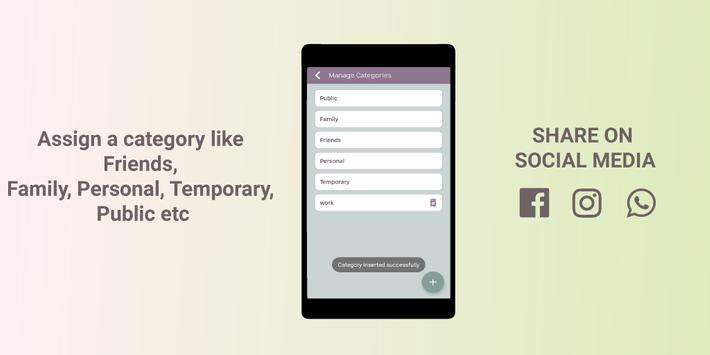 - Address book divided into categories like Public, Family, Friends, Personal & temporary.