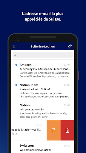 • Notifications Push: l'application vous avertit immédiatement de l'arrivée de nouveaux e-mails.