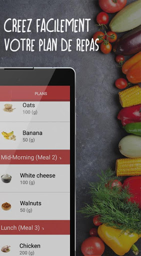 ► Possibilité de personnalisez votre plan de régime quotidien en utilisant les différents aliments proposés.