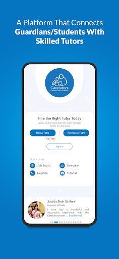 Caretutors est pour la première fois en ligne au Bangladesh pour embaucher des tuteurs et des cours de recherche.Il a été fondé en 2012. Désormais, la plate-forme dispose de quatre types de tutorat.Ce sont - le tutorat à domicile, le tutorat en ligne, le tutorat de groupe et le tutorat de package.Le service de tutorat à domicile est disponible dans toutes les grandes villes du Bangladesh comme Dhaka, Chattogram, Sylhet, Khulna, Rajshahi, Barishal, Rangpur, Mymensingh, Savar, Gazipur, Narayanganj & amp;Cumilla.Et en ligne, il est disponible dans tout le Bangladesh.De plus, le service de cette plate-forme est également élargi au Moyen-Orient (Arabie saoudite, EAU, Oman, Qatar, Koweït).Cette vision est de relier l'apprenant au bon tuteur.