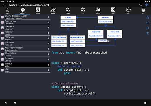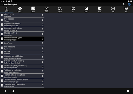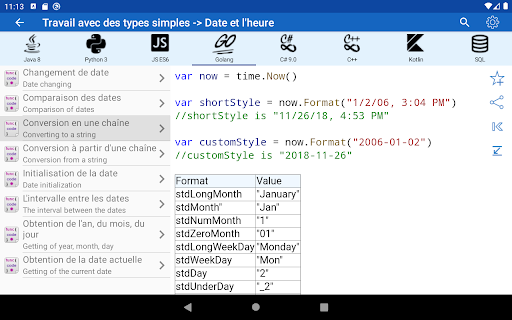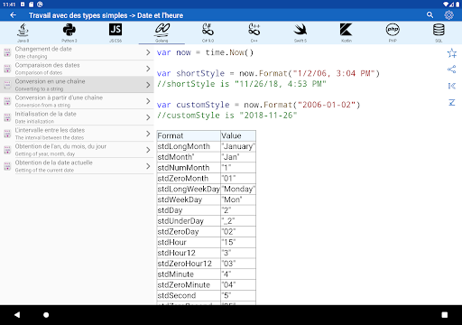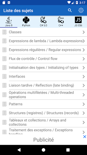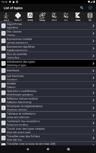 ✓ L'application est un bon outil lors de l'examen ou de la préparation à l'interview car elle contient une référence aux opérations fréquemment utilisées dans différents langages de programmation.