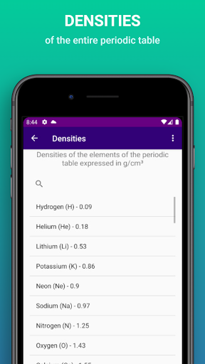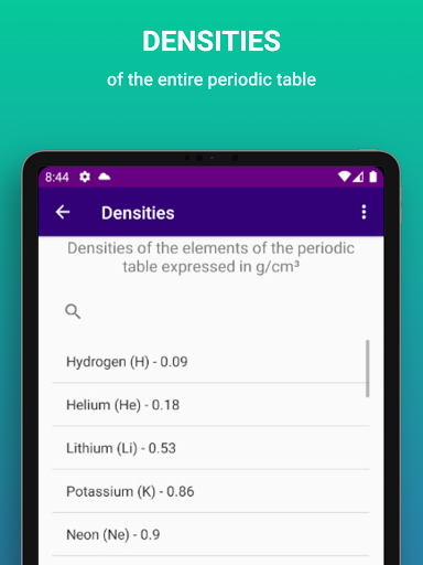 You can also know the density of all the elements of the periodic table, ordered from least to greatest and expressed in g / cm³.