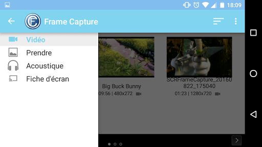 Les captures sont automatiquement stockés dans la FrameCapture de répertoire, qui peut être géré à partir de l'application. Pour accéder aux captures d'écran que nous avons d'appuyer sur le logo de l'application pour afficher le menu, trouver 2 options (Vidéo et Prendre). Nous naviguons les images capturées, supprimez ceux que vous ne voulez pas, et de les partager avec d'autres applications.