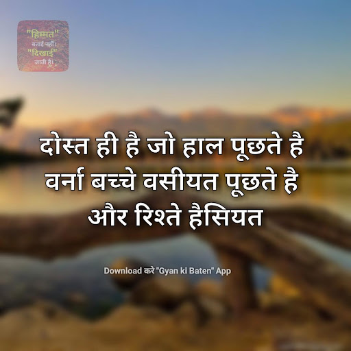 There is a great collection of Gyan ki Baatein. In this collection, you will find true thoughts in hindi or positive thoughts with hindi Suvichar shayari together think positive images and whatsapp good morning suvichar in hindi.