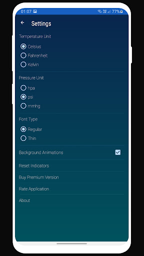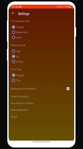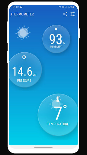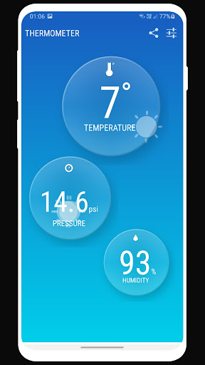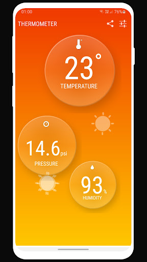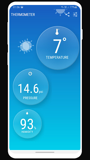 Thermomètre instantanée fournit des mises à jour fréquentes de la température de la station météorologique la plus proche à l'aide de vos téléphones capteurs de position. Mises à jour de température sont fournis par le service Web. Les couleurs de fond indiquent la température de la météo. L'application dispose également d'un indicateur d'humidité et de pression. Particularités sont positionnés personnalisé indicateurs et interface utilisateur élégante. Les utilisateurs peuvent repositionner indicateurs tout moment qu'ils le souhaiteraient.