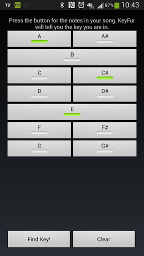 Keyfur est le meilleur ami du musicien!Avez-vous déjà écrit une chanson et vouliez-vous savoir quelle note à jouer suivant?Keyfur va vous dire!Une fois que l'utilisateur entrait les notes qu'elles utilisent actuellement, Keyfur répertorie les touches possibles que la chanson peut figurer. L'utilisateur peut ensuite sélectionner une touche et Keyfur leur montre les échelles associées à cette clé!
