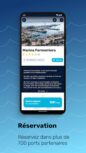 Avec plus de 700 ports partenaires à travers l’Europe et un réseau en forte croissance, Navily vous aide à sécuriser une place de port en quelques clics. Navily travaille en partenariat direct avec les ports pour vous fournir des informations mises à jour par les ports eux-mêmes : une grille tarifaire complète, horaires, événements, lieux touristiques, équipements et services... Envoyez vos demandes d’escales directement au port qui vous répondent dans l’application.