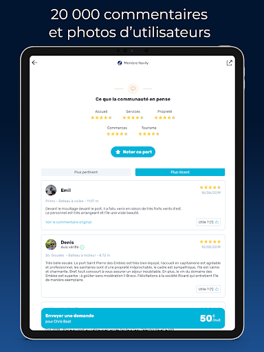 Découvrez plus de 300.000 avis partagés par la communauté avec photos, commentaires, informations sur la protection, le type de fond et bien plus encore. Tous les commentaires sont traduits en français et l’information est mise à jour en continu par notre communauté de passionnés de la mer.