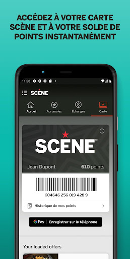 • Ayez instantanément accès à votre carte SCÈNE afin de ne jamais rater une occasion d’obtenir des points SCÈNE.