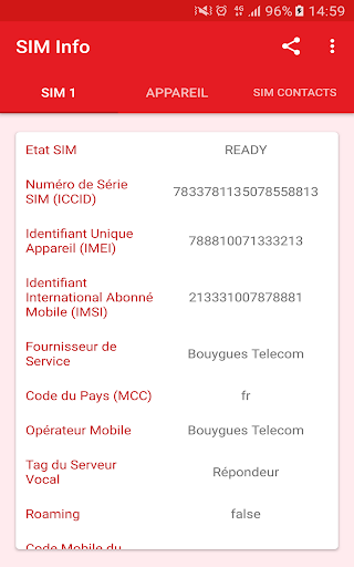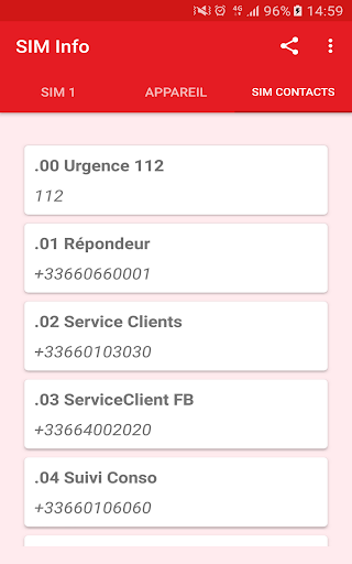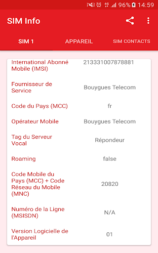 Carte SIM Info vous donne accès à toutes les informations contenues dans votre Carte SIM.