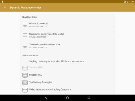 The free Sapling App makes it easy for students to manage (but not do) their assignments.