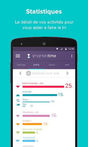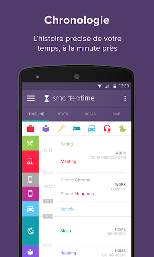 Mais Smarter Time apprend vite. Au bout de quelques jours, votre intervention n'est plus requise - l'application devine toute seule quand vous lisez, dormez, travaillez ou regardez la télé. Elle agrège ensuite toutes ces activités pour vous offrir des statistiques détaillées.