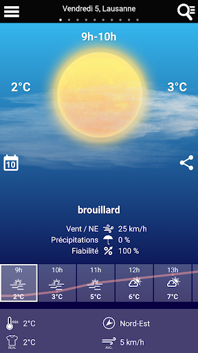 - Prévision météo pour chaque heure de la journée en Suisse, France et en Belgique.