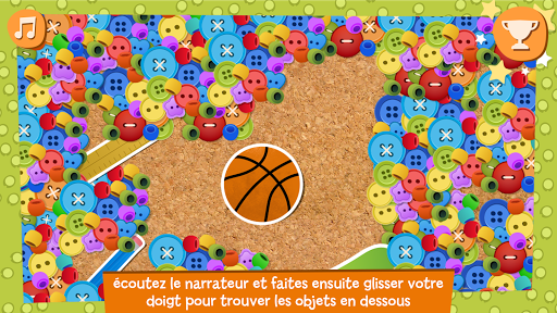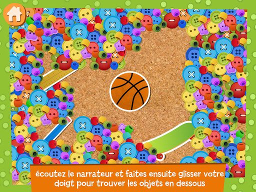 • Rub-a-Dub - votre enfant écoutera le narrateur et enlèvera le sable, les boutons et la peinture pour identifier les objets cachés dessous. Le jeu commence avec des mots simples comme "poire" et "crayon" et s'enrichit de phrases complexes comme "trois pinceaux verts", pour que votre enfant soit mis au défi au fur et à mesure de ses progrès.