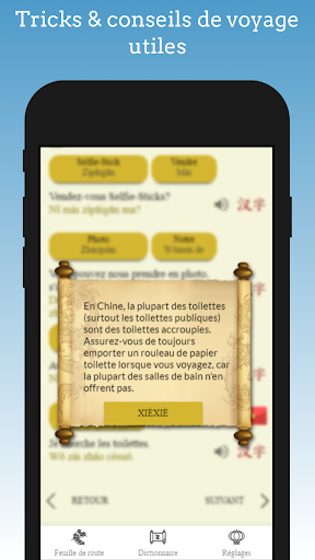 🌍✈ Travel china - Parlez Chinois en 10 Jours Offline propose une approche de voyage développée par des locuteurs natifs, qui vous aidera à gérer votre aventure dans tout le pays, à explorer les lieux d'intérêt, à goûter différents aliments